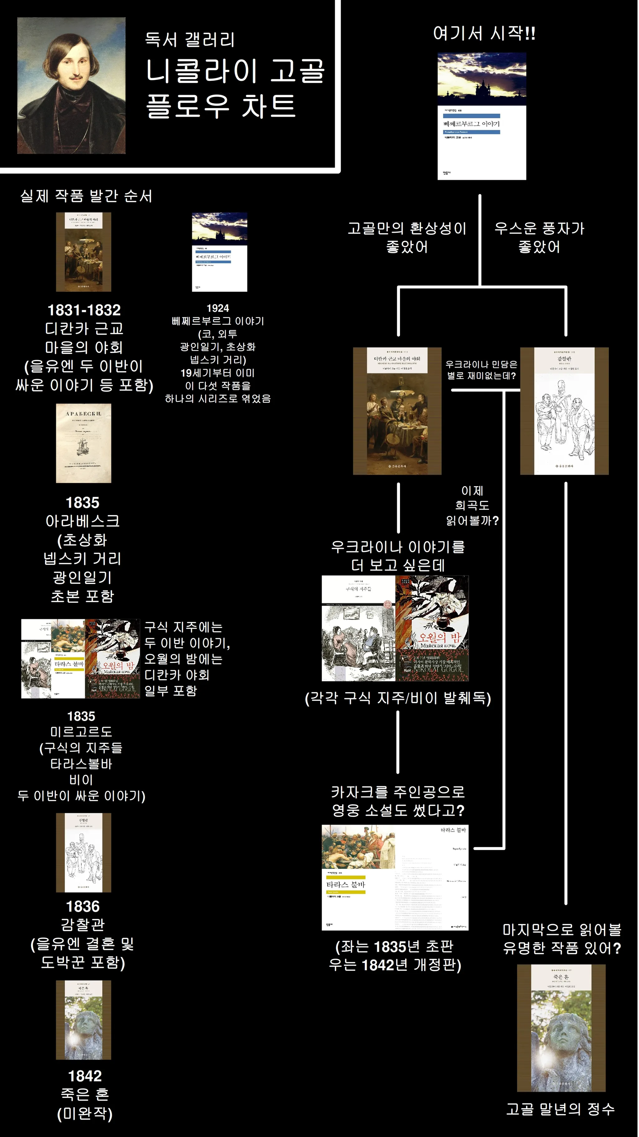 사실 읽는 순서는 작품이 너무 적어서 나도 의미가 있나 싶기도 한데...중요한 건 고골은 작풍이 굉장히 다양한 작가라는 거임