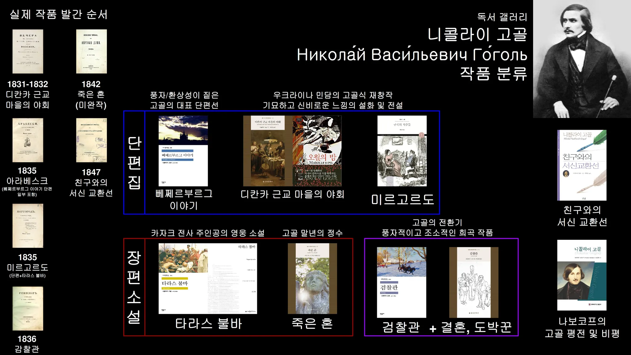 고골은... 뭔가 하나의 키워드로 설명하기 어려운 작가라서 그냥 정리하는 차원에서 이렇게 만들어봤음